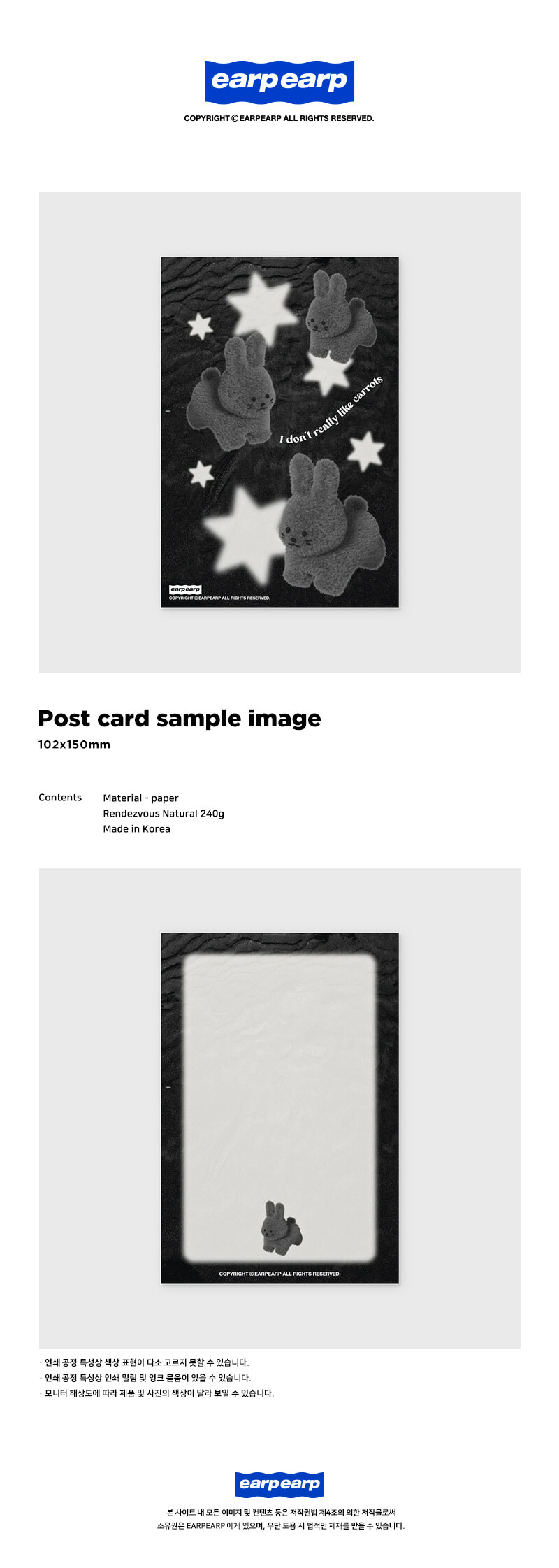 (現貨) EARP EARP - FAKE PURPLE RABBIT CHICHI-WHITE POSTCARD